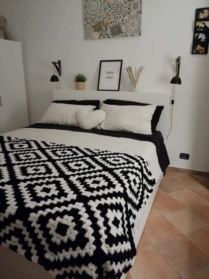 纯黑 + 纯白的高对比撞色,视觉张力强且适配原木、工业风等多类家居风格。它四季可用,既是保暖裹盖物也是软装亮点,是件 “好钩、百搭、自带空间张力” 的手工家居毯