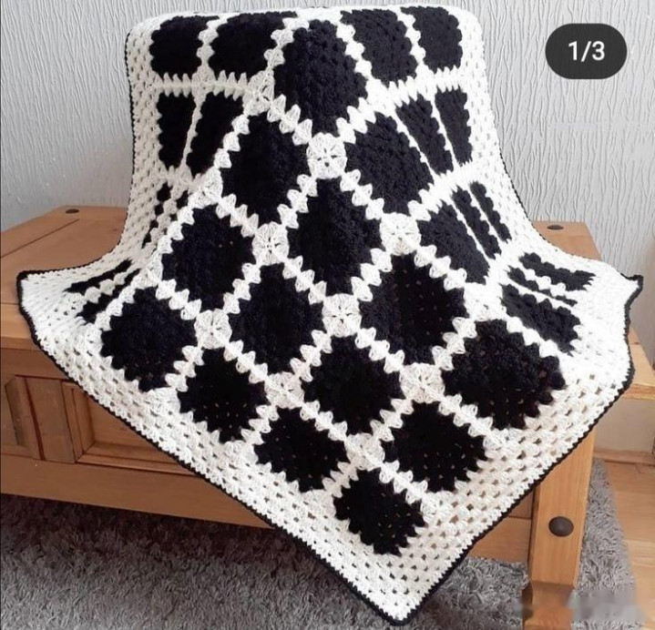 这些黑白万能祖母方格钩针毯子,是新手友好的家居软装好物:主体用 “万能祖母方格” 单元花,拼接灵活可按需定尺寸,黛西之前有分享过这款单元花的钩织视频哈