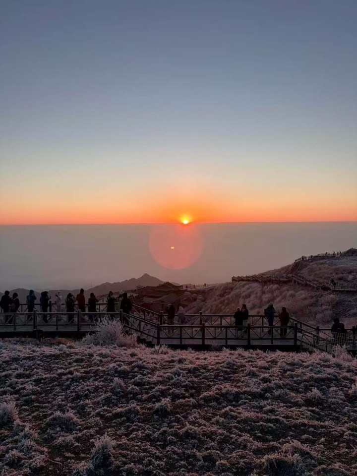 小梁和朋友在武功山看到的日出。图/受访者提供